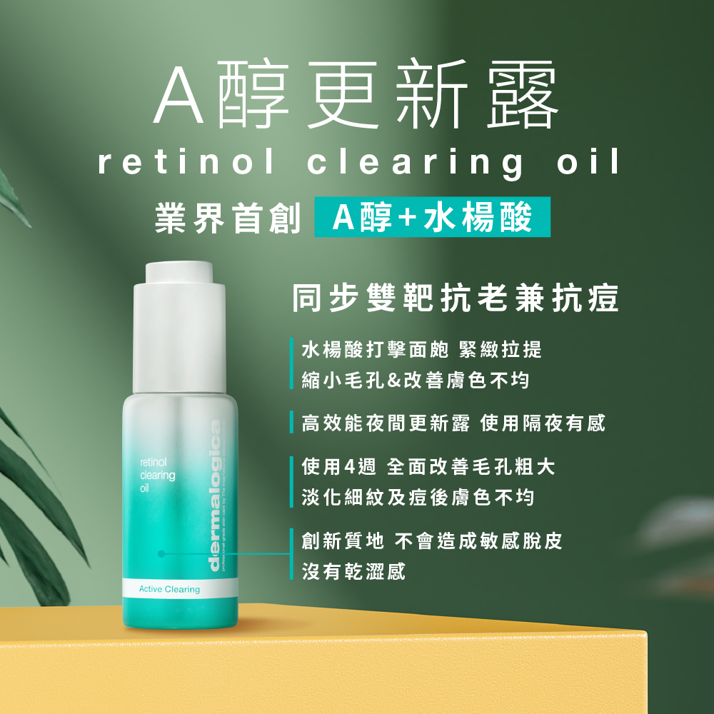一款結合A醇及水楊酸的二合一高效能夜間精華油,輕質油小分子好吸收不黏膩,添加如摩洛哥堅果油、玫瑰果油等溫和植物油配方,加強肌膚障蔽功能,同時改善成人面皰痘痘及老化膚況(如粗糙、膚色不均、細皺紋等),綻放純淨光采。